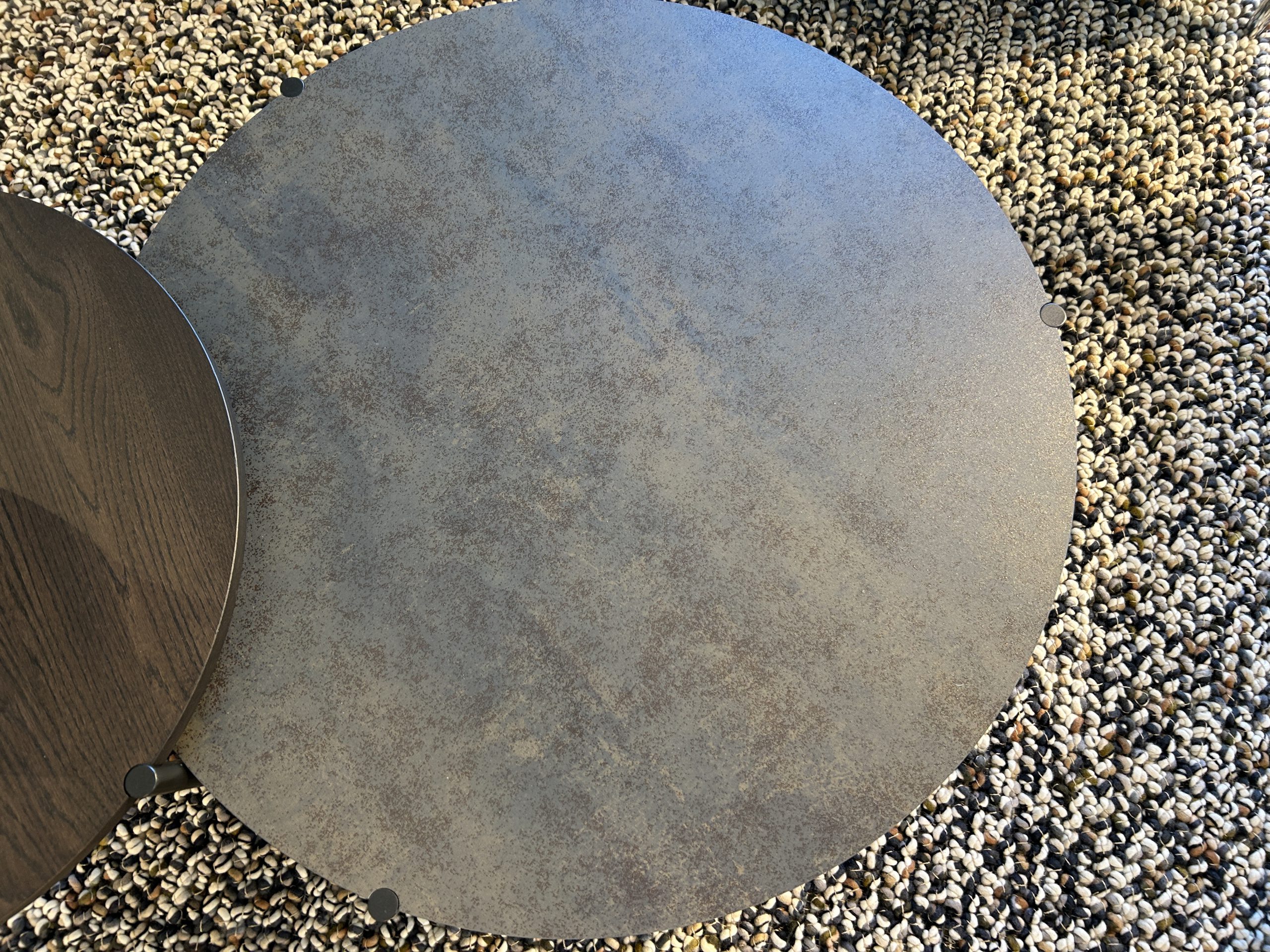 Het royale bovenblad is uitgevoerd in keramiek Ceramic Iron Moss – een prachtige, stoere afwerking met een luxe uitstraling én onderhoudsvriendelijk oppervlak. Het slanke epoxy E2200 nuit silk onderstel zorgt voor een verfijnd contrast en geeft de tafel een elegante, moderne look.