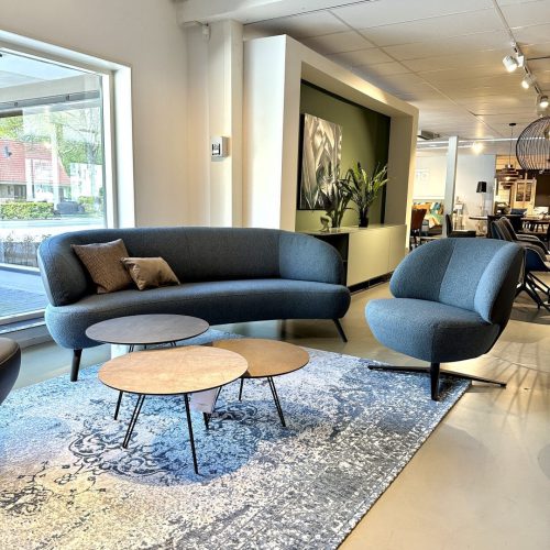 Deze bank is verkrijgbaar in een 2,5-zits, 3-zits en een hoekopstelling. De Dilar bank heeft ronde vormen en een retro uitstraling. Je kunt de bank krijgen in stof of leer of zoals bij ons in de winkel in een combinatie stoffering. We hebben in de winkel Dilar staan met een zachte bouclé stof. Kom je gezellig langs om te proefzitten?
